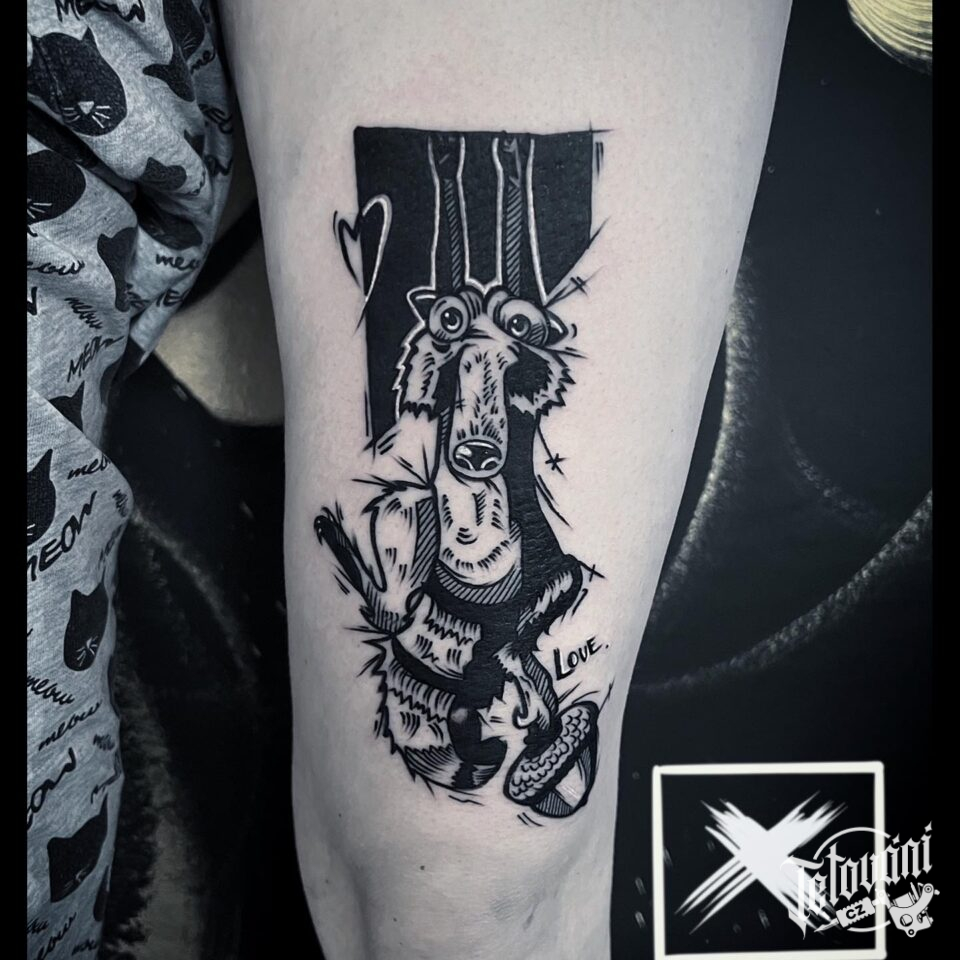 Tetování z filmů a pohádek, veverka z doby ledové na paži