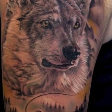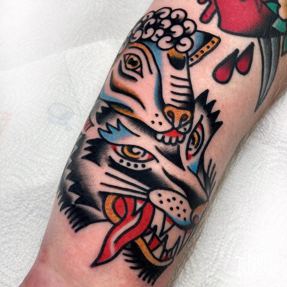 Tetování z filmů a pohádek vlk, ovce na rameno