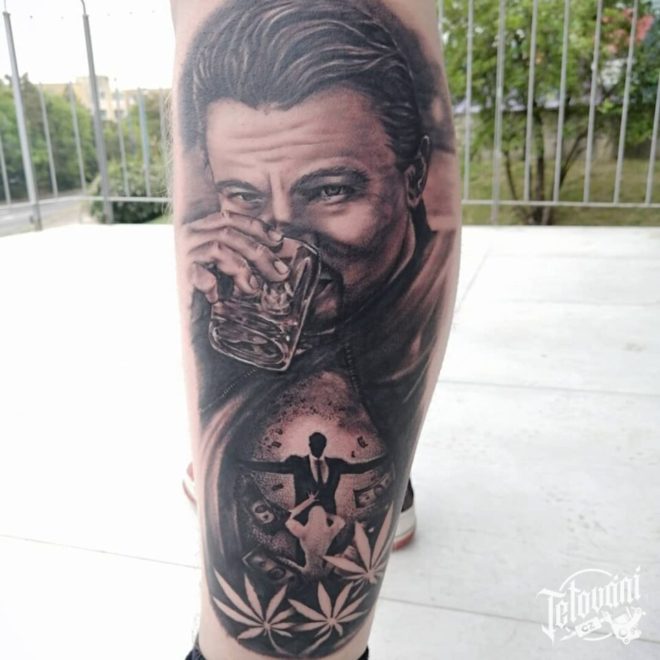 Tetování z filmů a pohádek Vlk z Wallstreet na lýtko