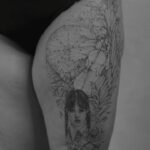 Tetování z filmů a pohádek, Wednesday, hudba, květiny, pavučina na stehně