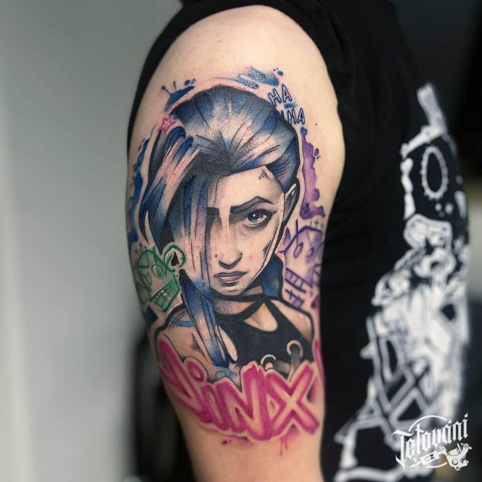 Tetování z filmů a pohádek, žena a nápisy na rameni