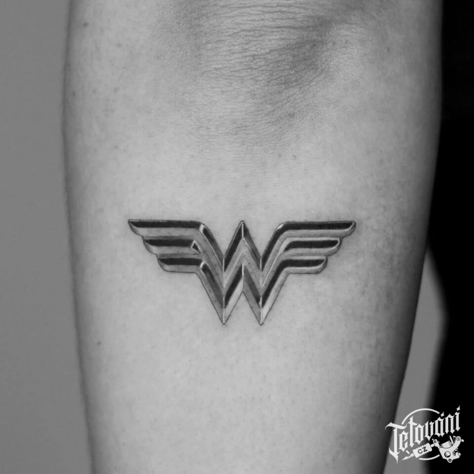 Tetování z filmů a pohádek, znak Wonder Woman na předloktí