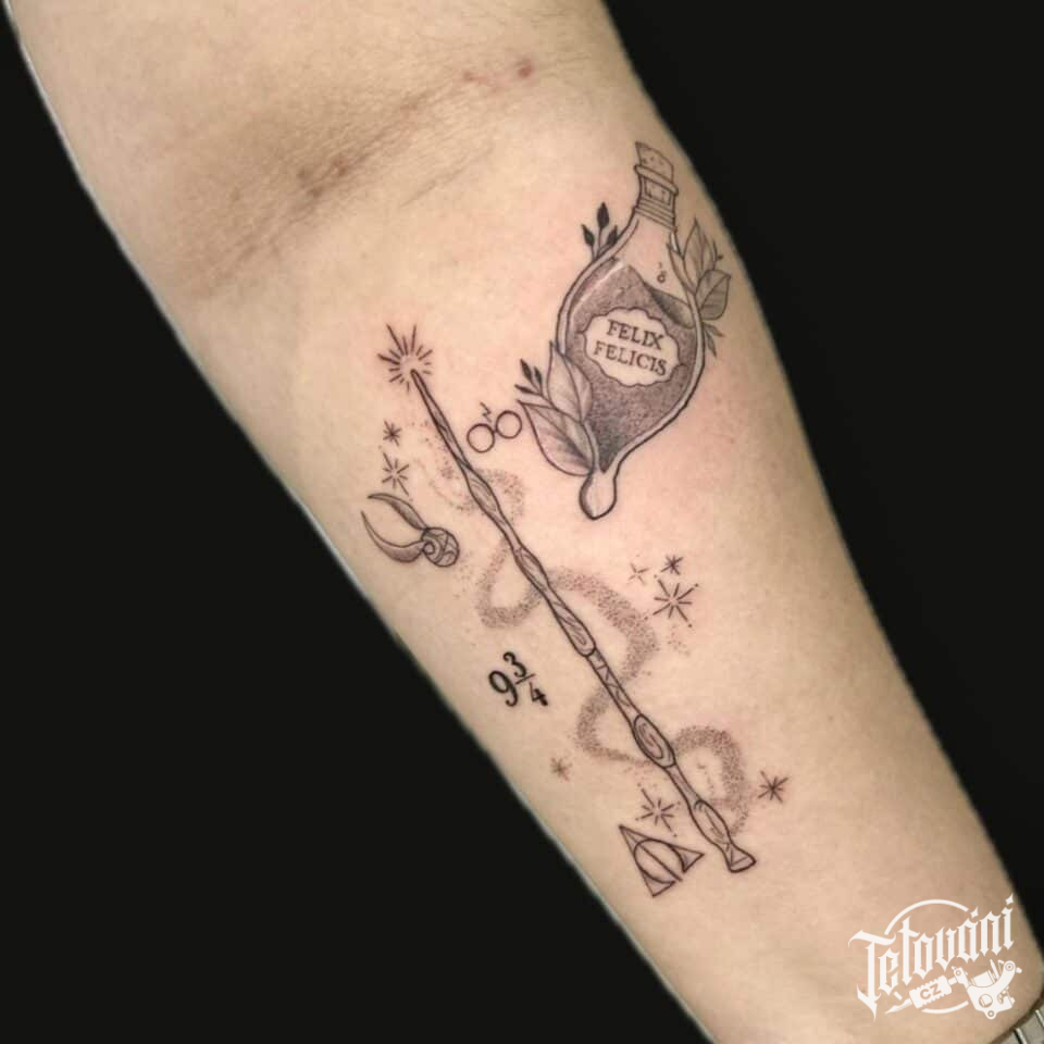 Tetování z filmů a pohádek Harry Potter,znaky a symboly na předloktí