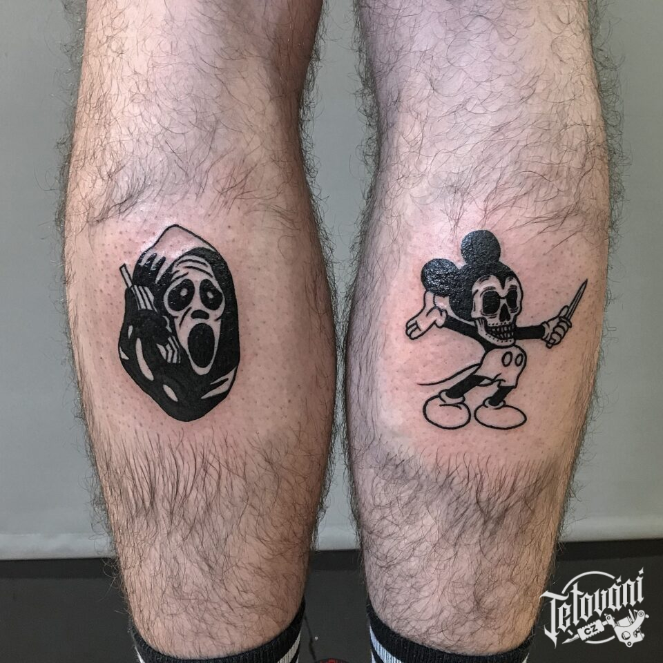 Tetování z filmů a pohádek, znamení zla a Mickey mouse na lýtku