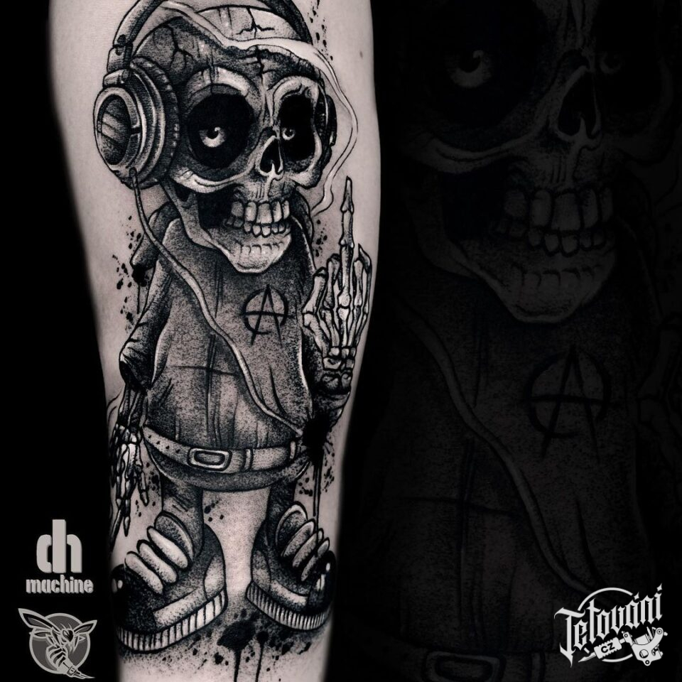 Tetování z filmů a pohádek, znamení zla, lebka na předloktí