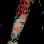 Tetování z filmů a pohádek, zvíře, nápisy na předloktí
