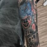 Tetování z filmů TO, klaun a nápisy na předloktí
