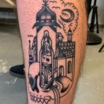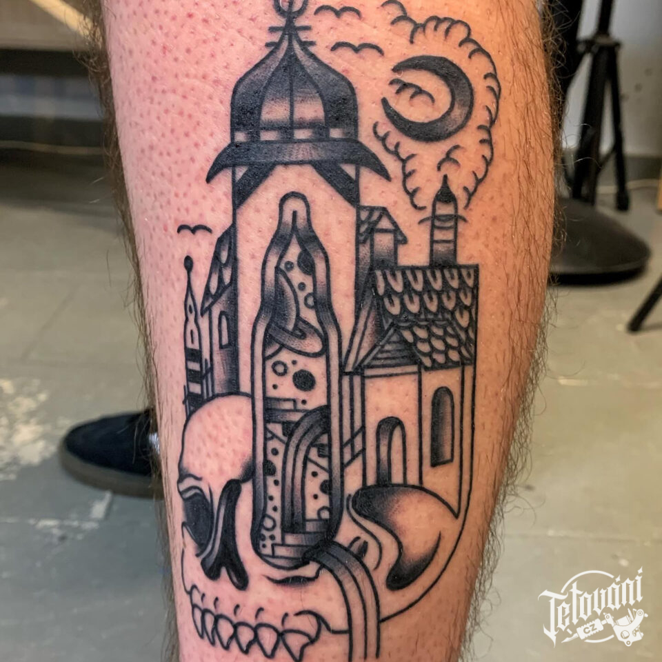 Tetování zámek na holeň