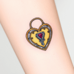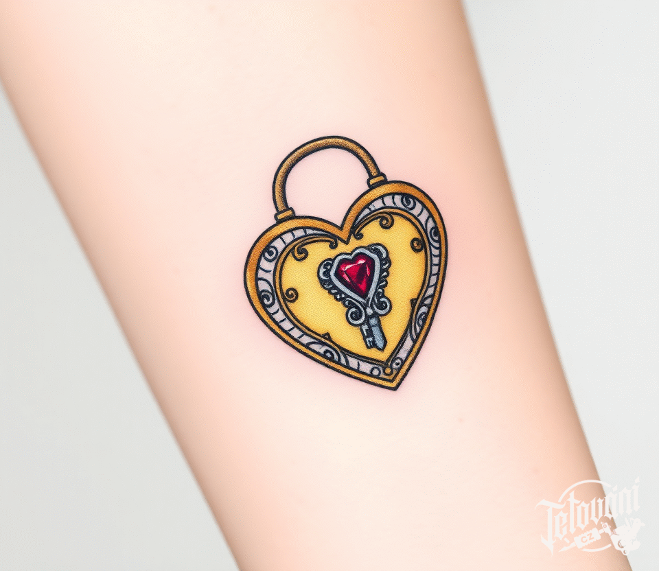 Tetování zámek ve tvaru srdce na předloktí