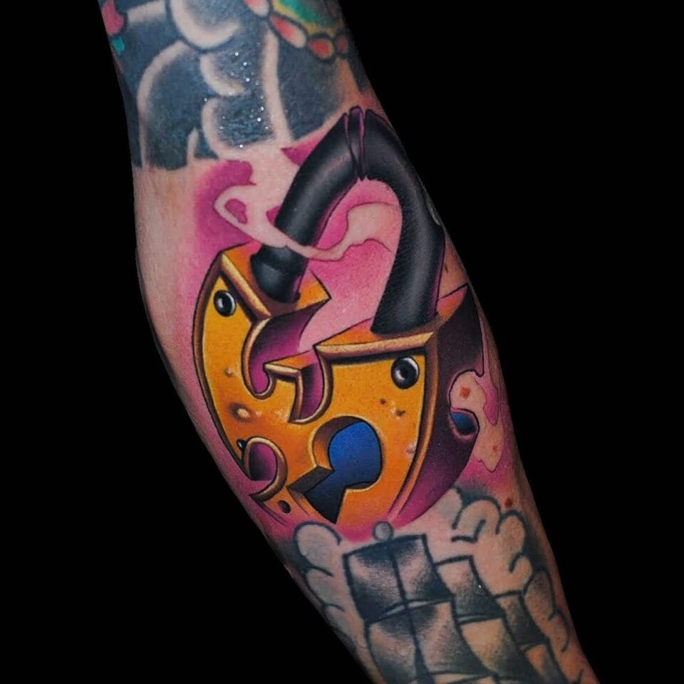 Tetování zámek a klíč na předloktí