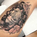 Tetování žena a květiny na stehno