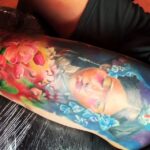 Tetování žena a květiny na stehno