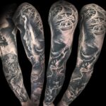 Tetování žena a lebka, rukáv