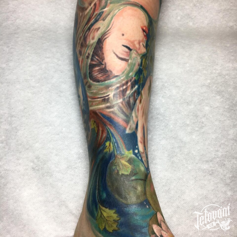 Tetování žena a příroda na noze