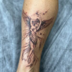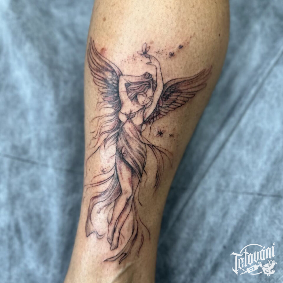 Tetování žena anděl na lýtku