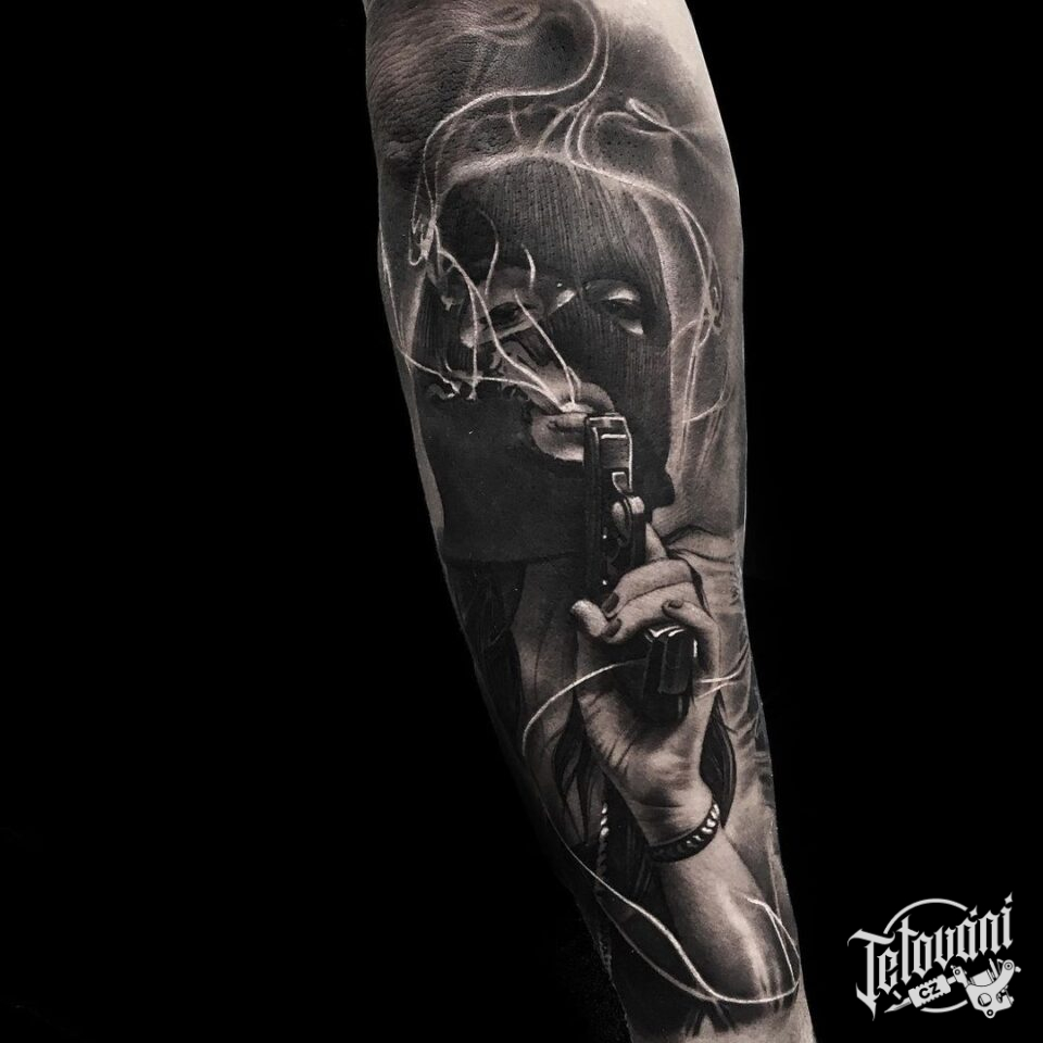 Tetování žena bandita na předloktí