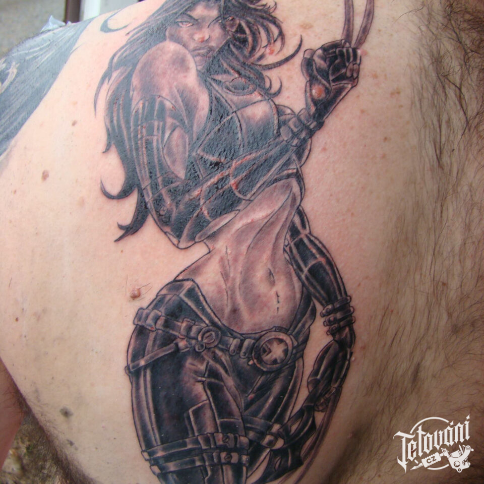 Tetování žena bojovnice na lopatce