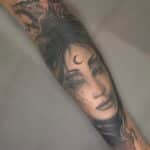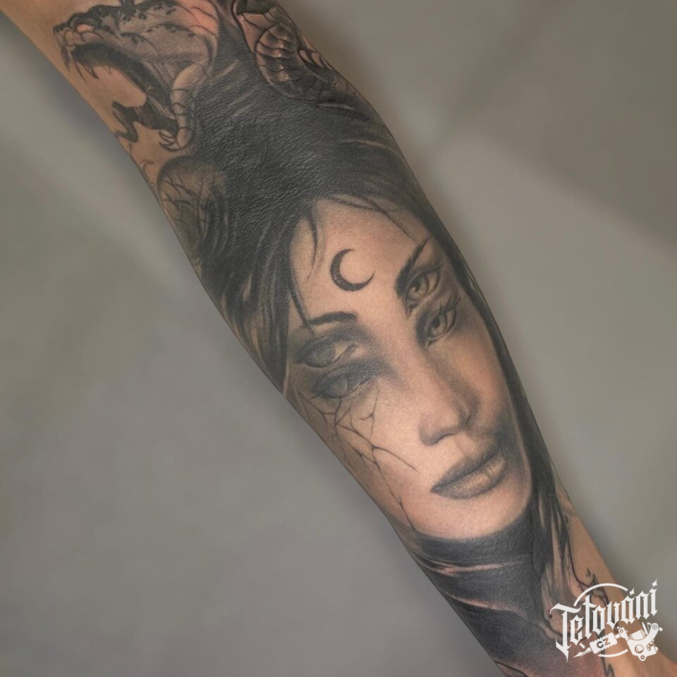 Tetování žena, čarodějnice a had na předloktí