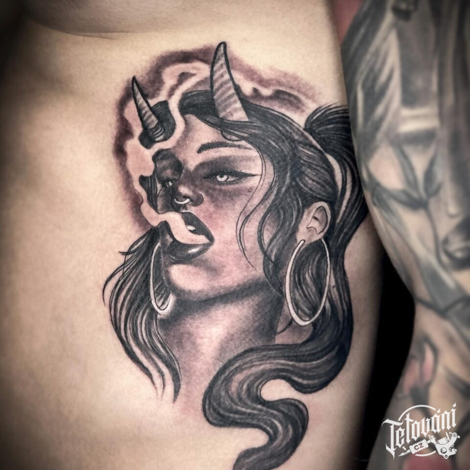 Tetování žena ďábel na bok