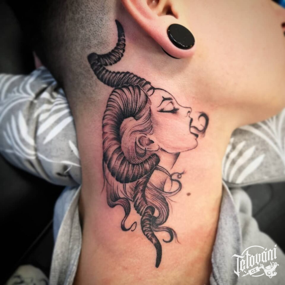 Tetování žena ďábel na krku