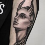 Tetování žena, ďábel na rameni