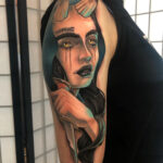 Tetování žena, ďábel na rameno
