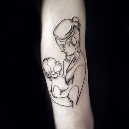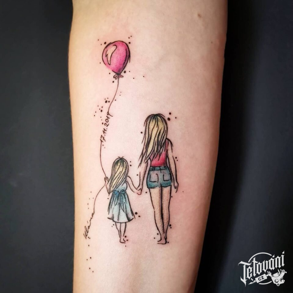 Tetování žena, dítě, rodina na předloktí