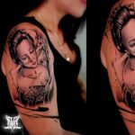 Tetování žena, gejša na rameno
