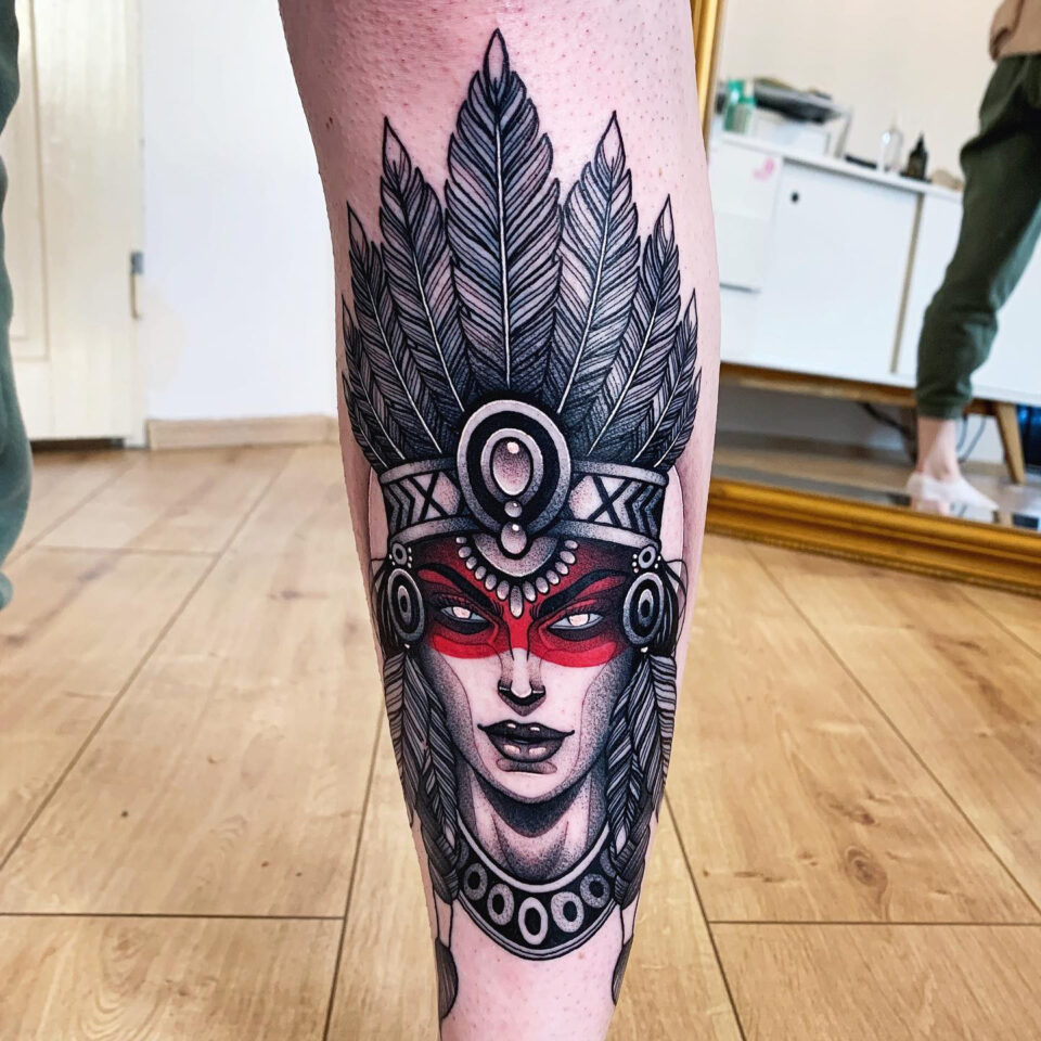 Tetování žena, indián na lýtko