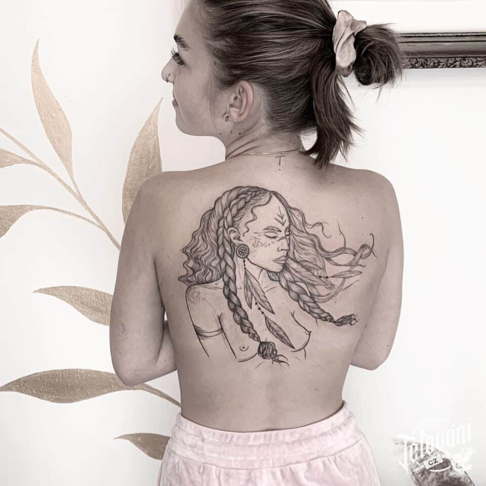Tetování žena indiánka na záda