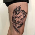 Tetování žena jako anděl na bok stehna