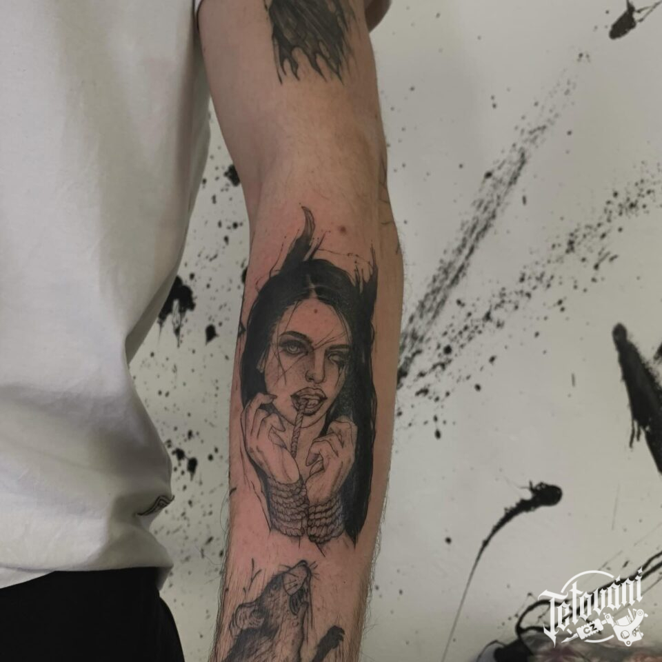 Tetování žena, jako ďábel na předloktí
