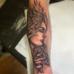 Tetování žena, jako mýtická bytost Valkýra na předloktí