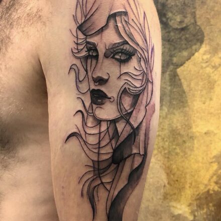 Tetování žena jako nadpřirozená bytost upír na předloktí