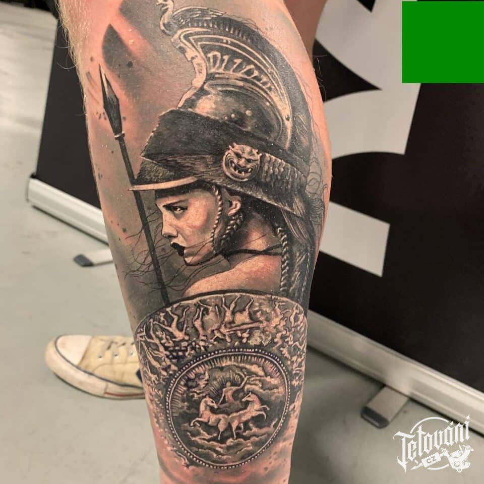 Tetování žena jako spanarťanská bojovnice na lýtko