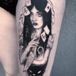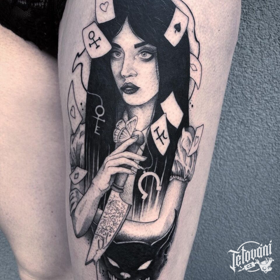 Tetování žena, karty na stehno