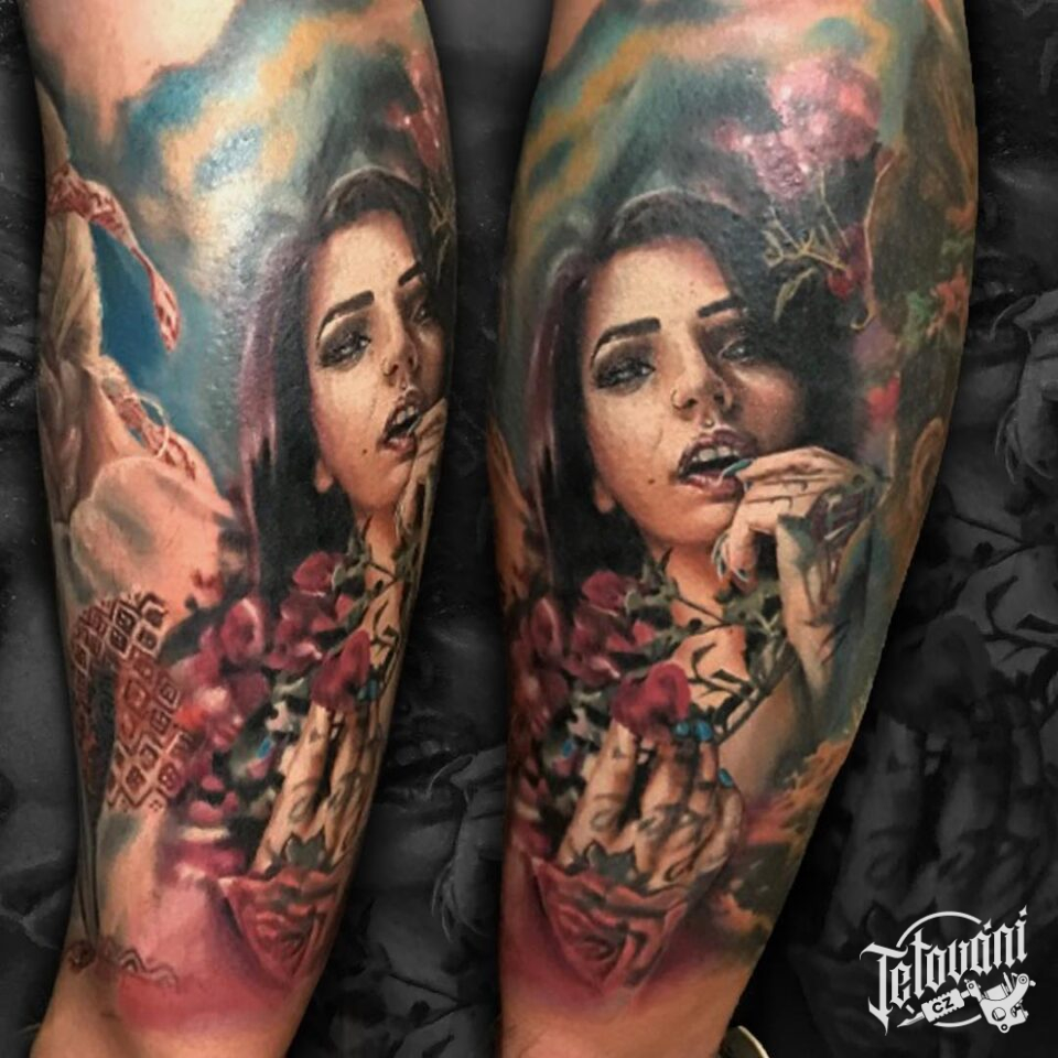 Tetování žena, květiny ...