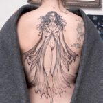 Tetování žena, květiny na záda