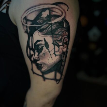 Tetování žena, lady justice na předloktí