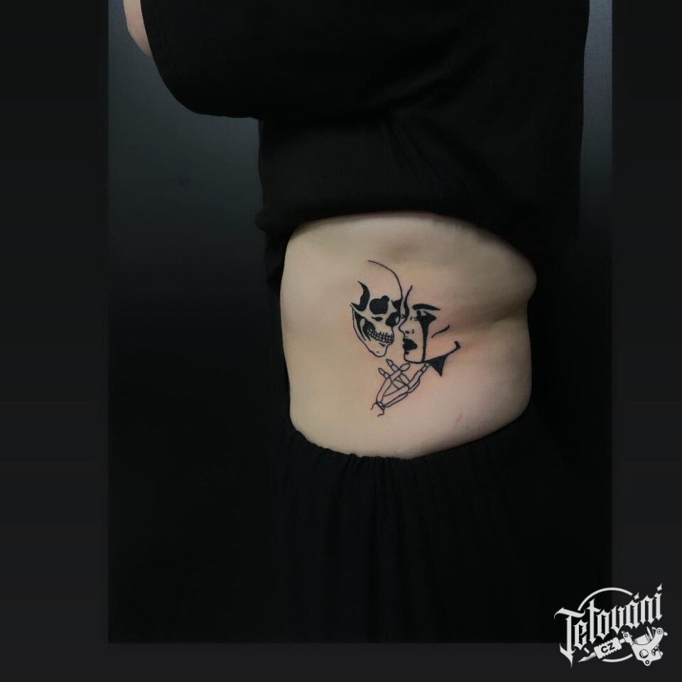 Tetování žena, lebka na bok