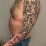 Tetování žena, maska, Joker a postavička z filmů a pohádek na rukávu