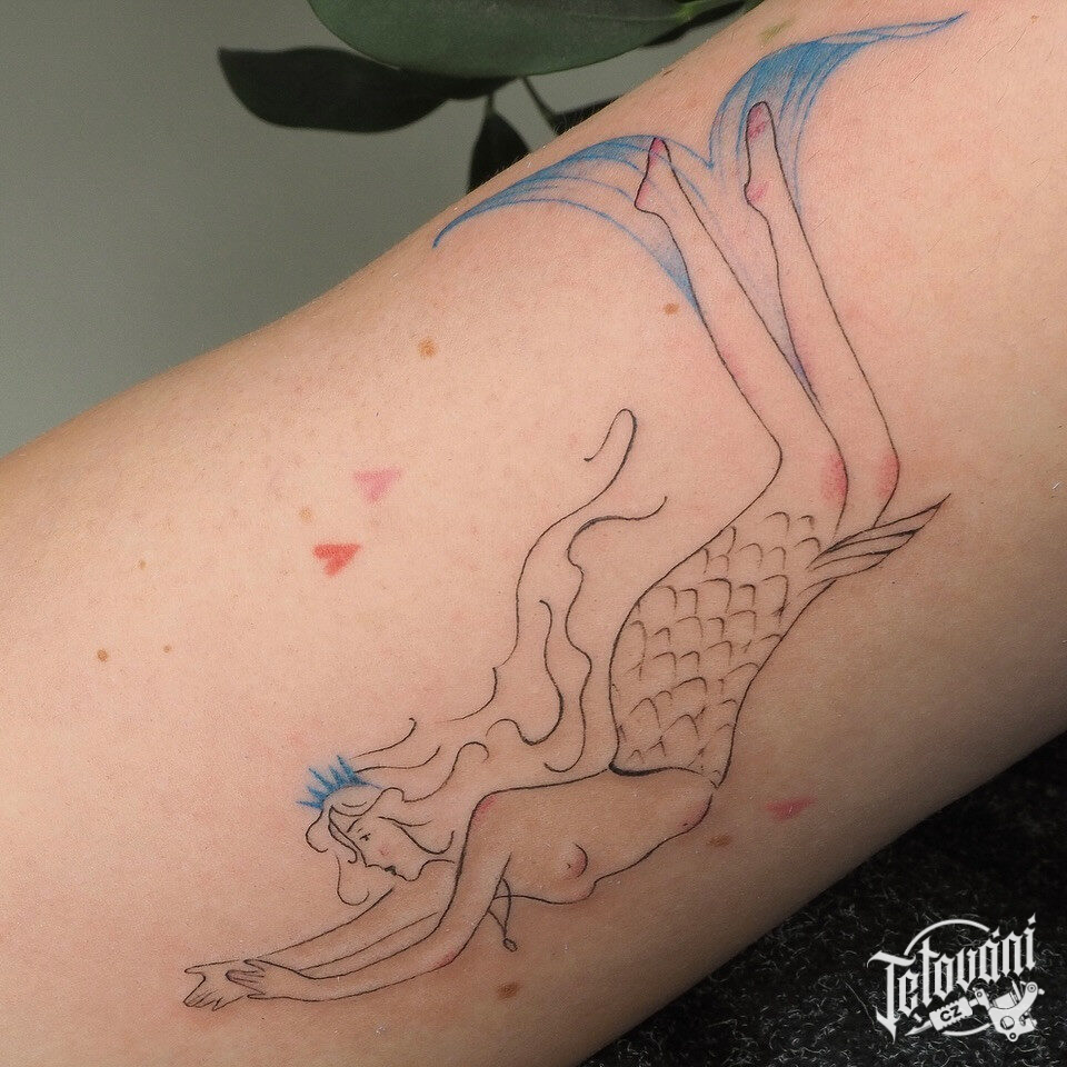 Tetování žena, mořská panna na ruce