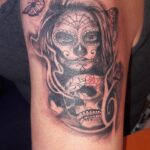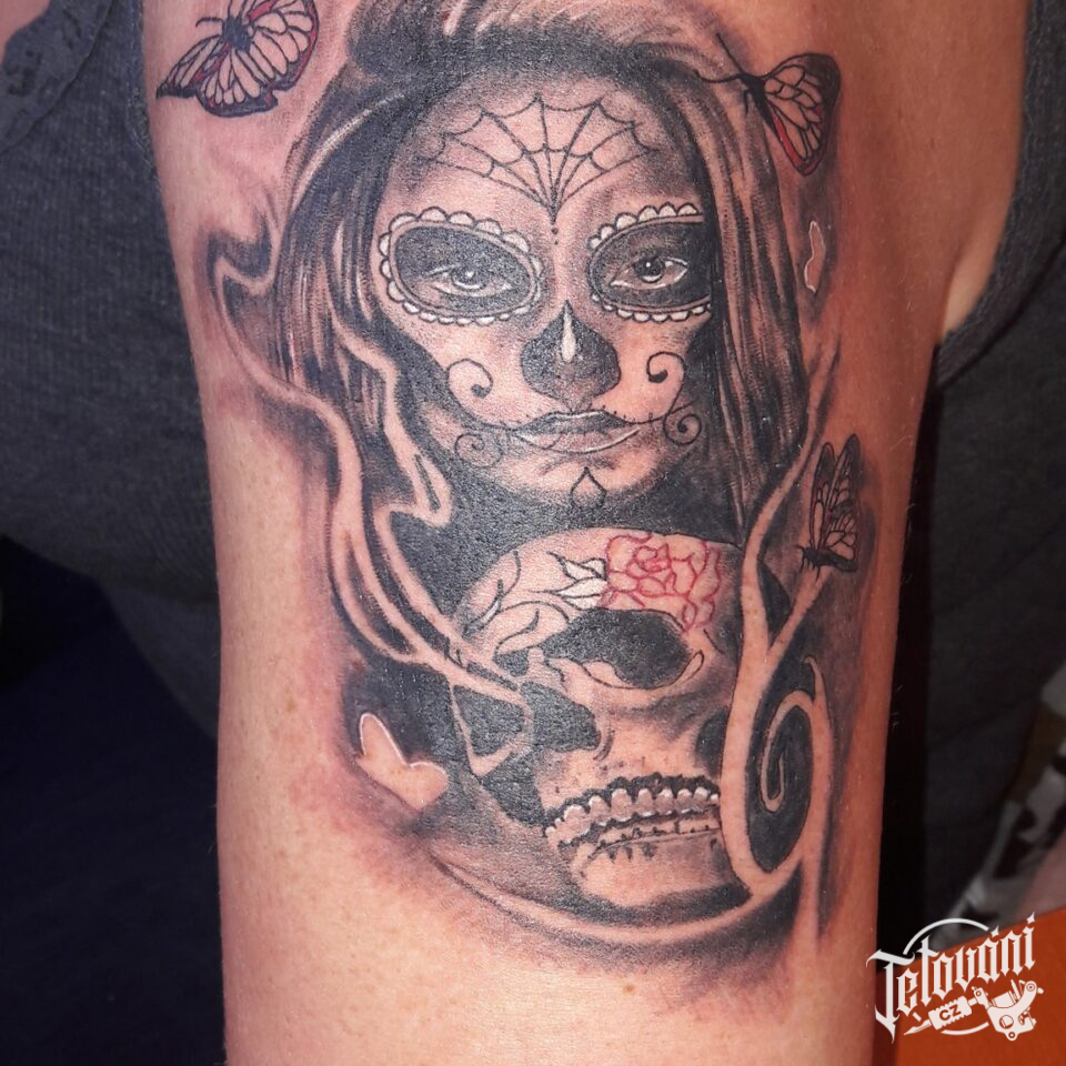 Tetování žena muerte, lebka na rameno