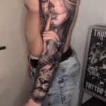 Tetování žena muerte, zvíře, lev na ruku