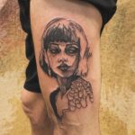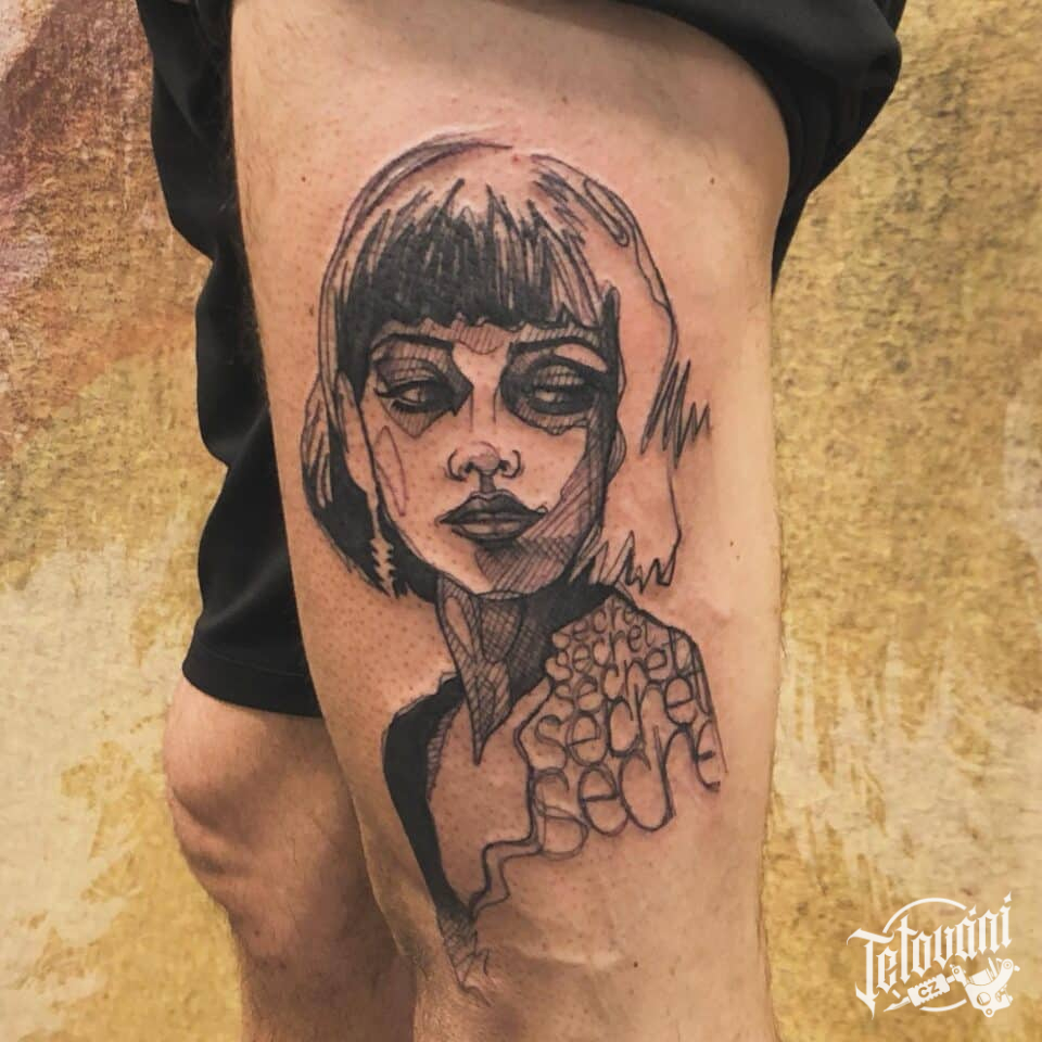 Tetování žena na bok stehna