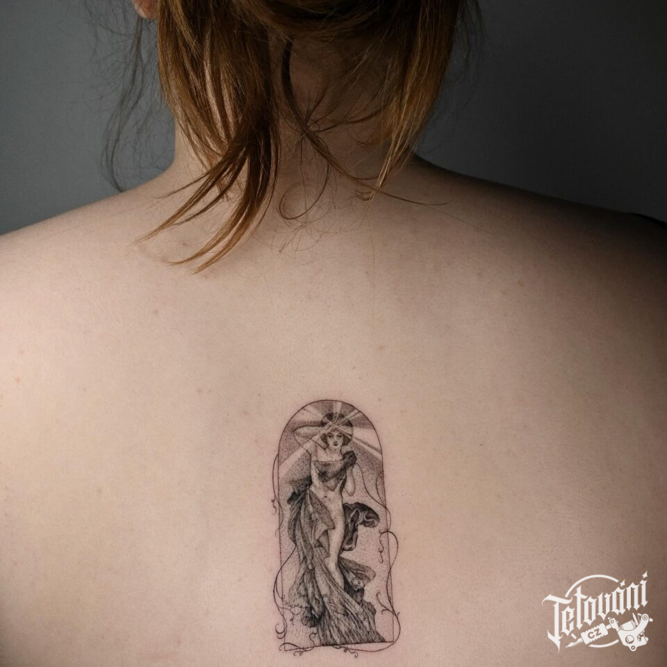 Tetování náboženství, žena na zádech