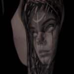 Tetování žena, nadpřirozená bytost, portrét, symbol na rameno
