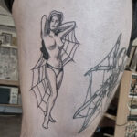 Tetování žena, pavučina na bok stehna
