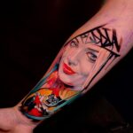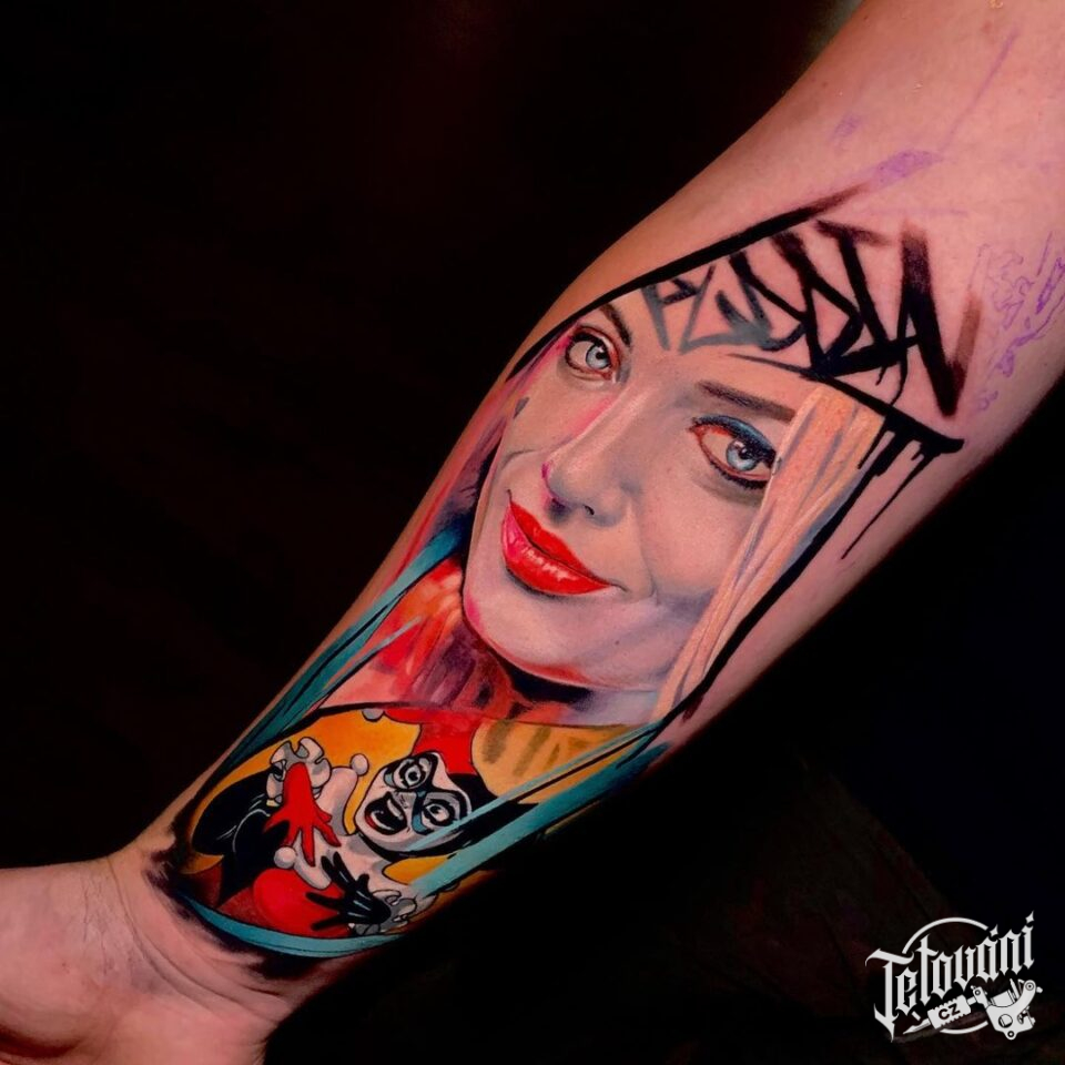 Tetování žena portrét, klaun na předloktí