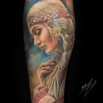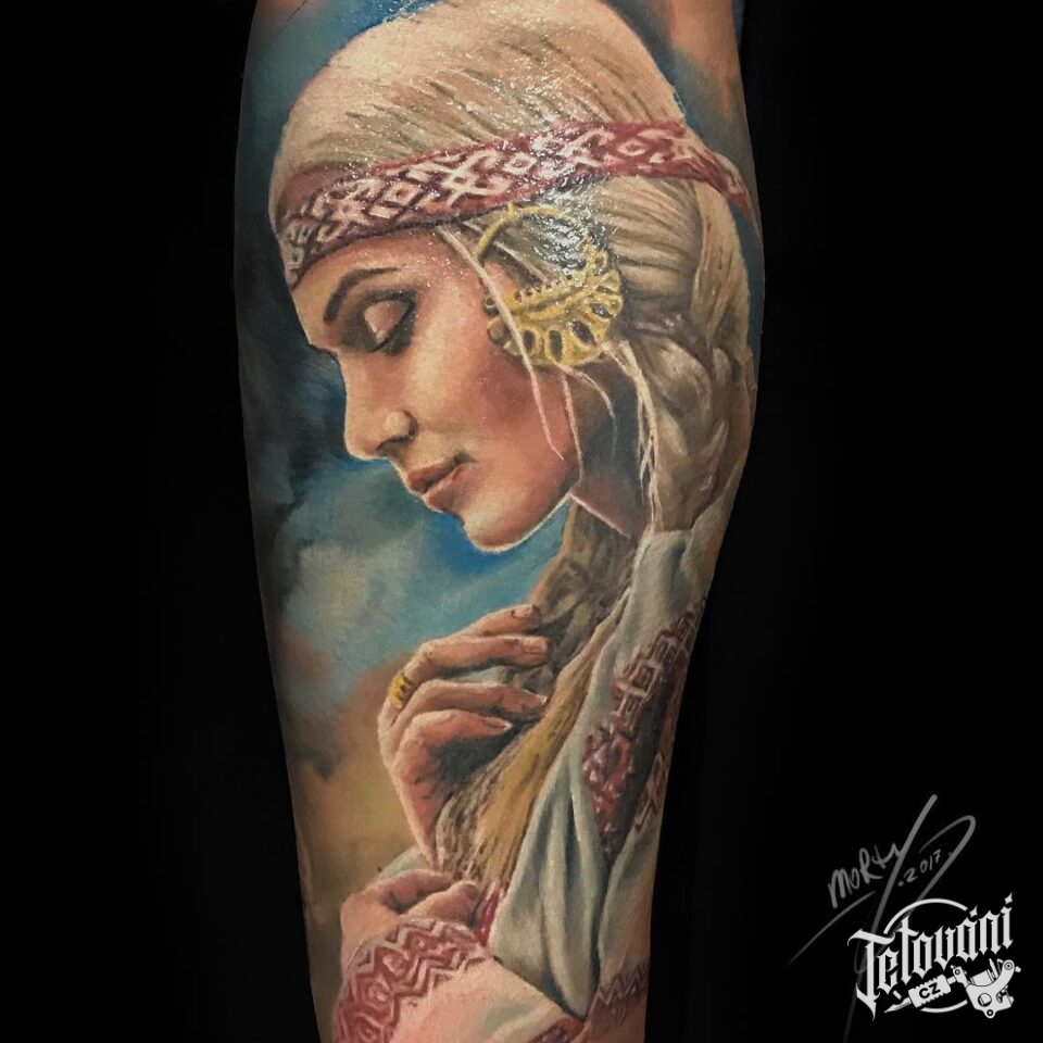 Tetování žena, portrét na lýtko